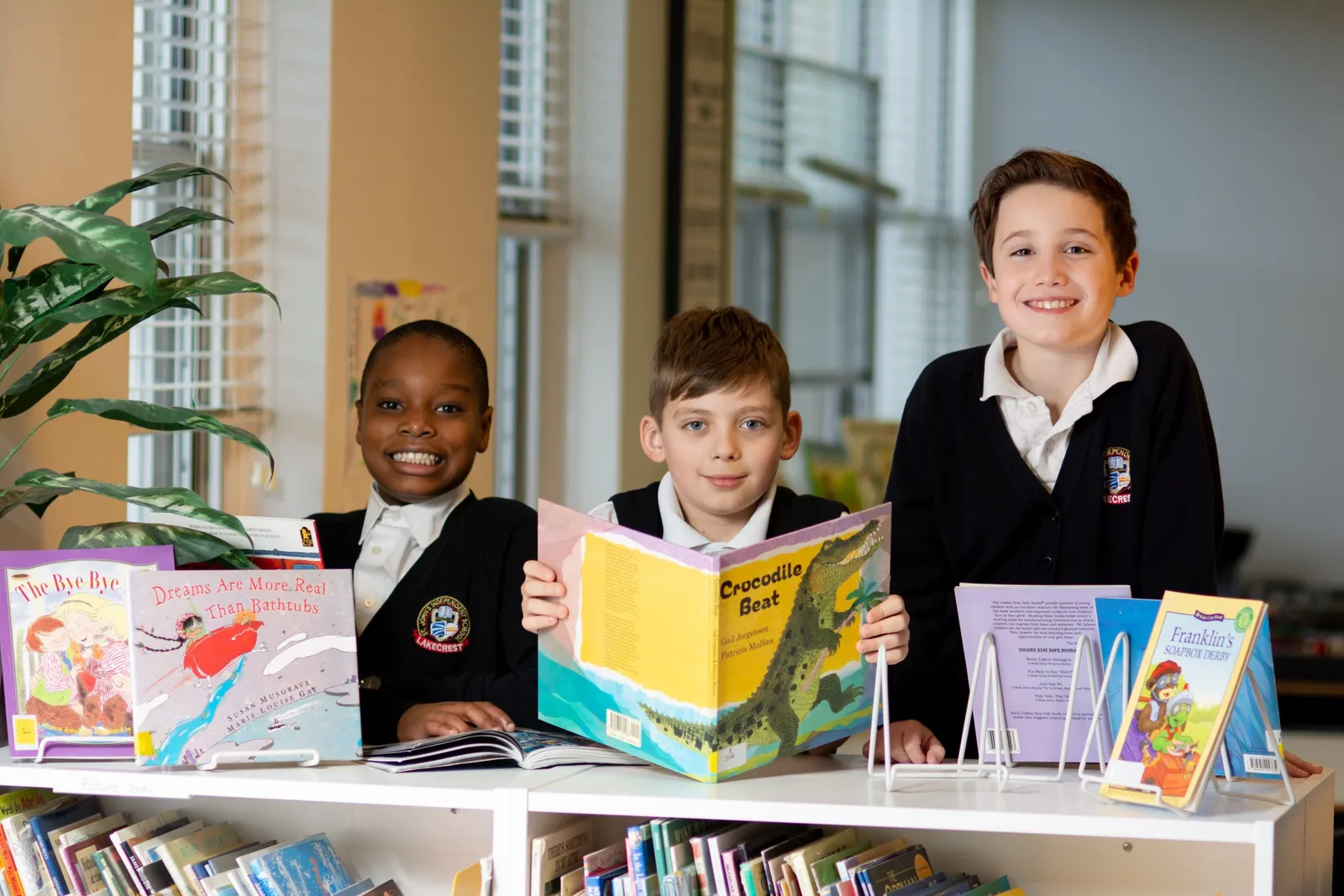 Lakecrest Independent School features a campus with library.